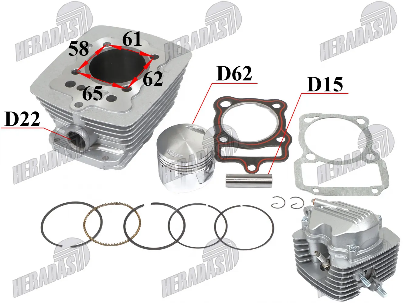 Cilindras stūmoklis IR GALVUTĖ keturračio motociklo CG 150cc D62 PIN15 162FMI CG150 pilnas komplektas