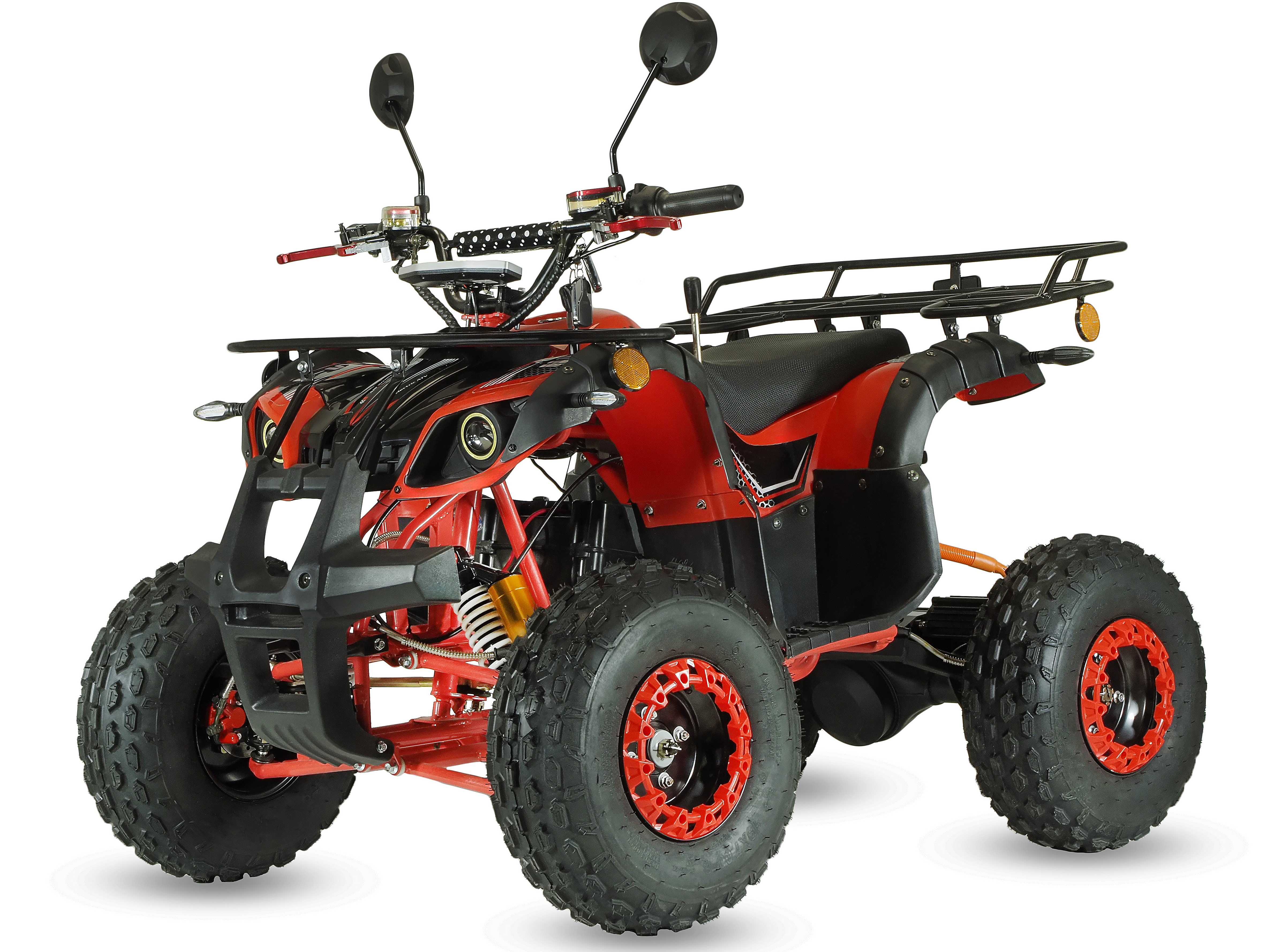Komfortiškai kelionei užtikrinti keturratyje sumontuoti priekiniai ir galinis amortizatorius.