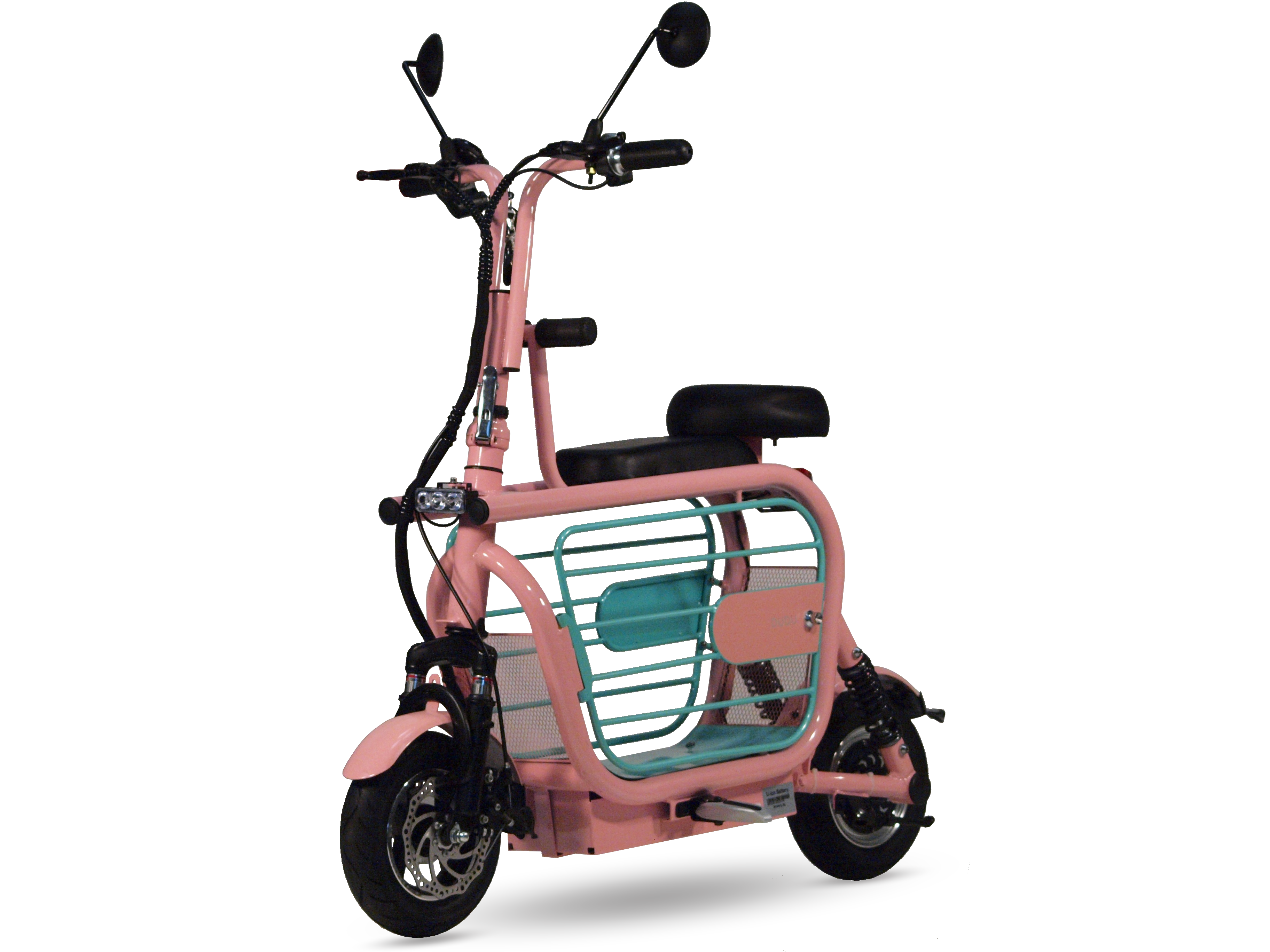 Paspirtukas,skuteris turi dvi sėdynes ir dvi rankenas - gali važiuoti vienas suaugęs ir vienas vaikas (iki 15 kg). Vaikišką sėdynę galima numontuoti ir paspirtuką naudoti kaip vienvietį. Paspirtukas telpa į vidutinio dydžio automobilio bagažinę.
