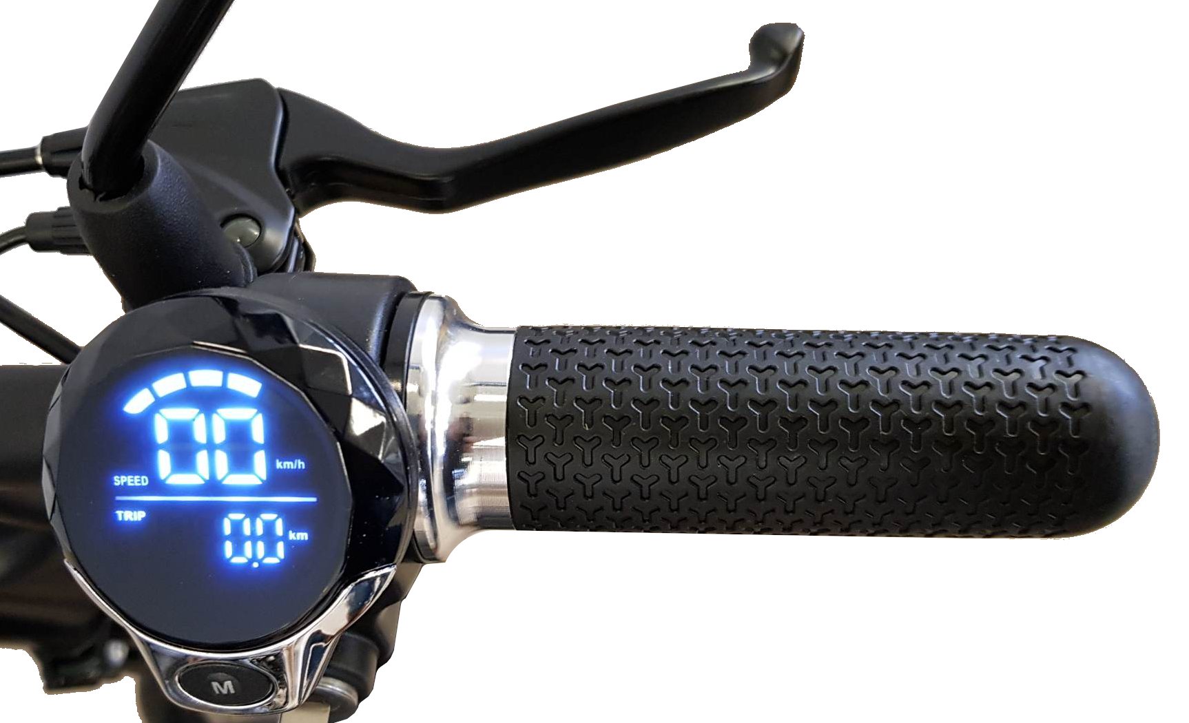 Elektrinis paspirtukas , skuteris labai lengvai valdomas - užtenka pasukti akseleratoriaus rankenėlę. Jo prietaisų skydelyje matysite važiavimo greitį, nuvažiuotą atstumą, bei baterijos įkrovos lygį.