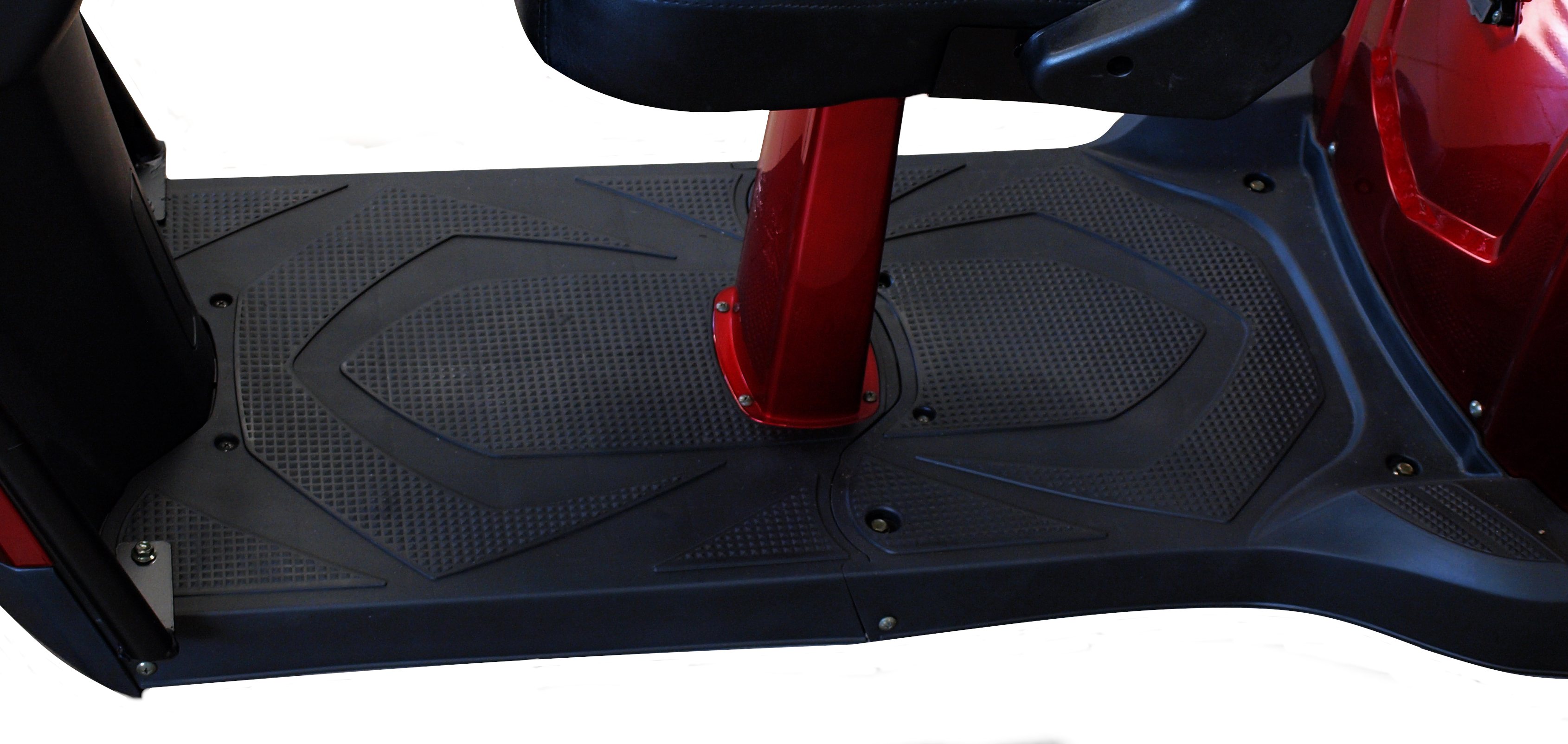 Motoroleriu važiuosite patogiai ir saugiai: plačios ir minkštos reguliuojamos sėdynės su pasikeliančiais porankiais ir saugos diržu.