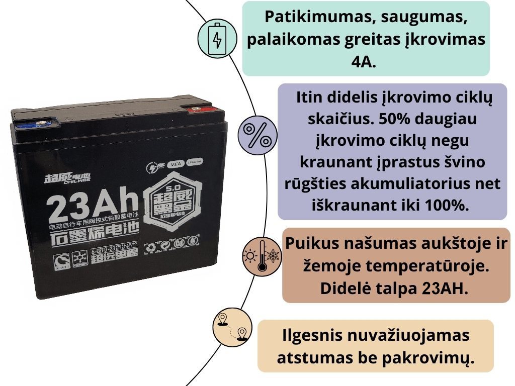 50% daugiau įkrovimo ciklų negu kraunant įprastus švino rūgšties akumuliatorius (GEL).