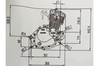Motociklo variklis 250cc, mechaninė greičių dėžė, aušinamas ORU, elektrinis/kojinis starteris, keturtaktis 172FMM