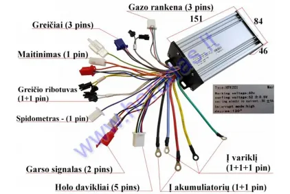 Elektrinio triračio kontroleris 60V 1000W 30A  MS04 arba 60V sistemai MS03 modeliams iki 2019ne sinusiniams varikliams. HFKZ01 Analogas EB1251