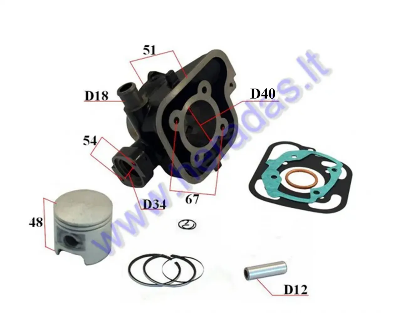 Stūmoklis žiedai motorolerio Peugeot Buxy 50cc AC 2T D40 remontinis +0,75MM