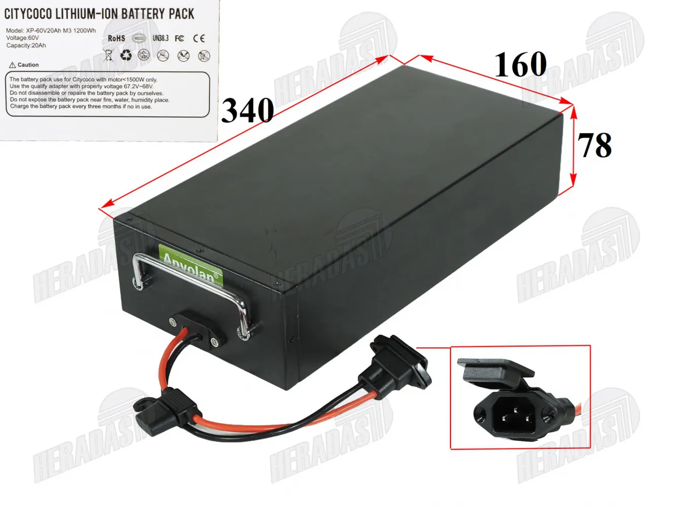 Elektrinio motorolerio skuterio, ličio jonų baterija akumuliatorius 60V 20Ah tinka CITYCOCO, HM2, HM3