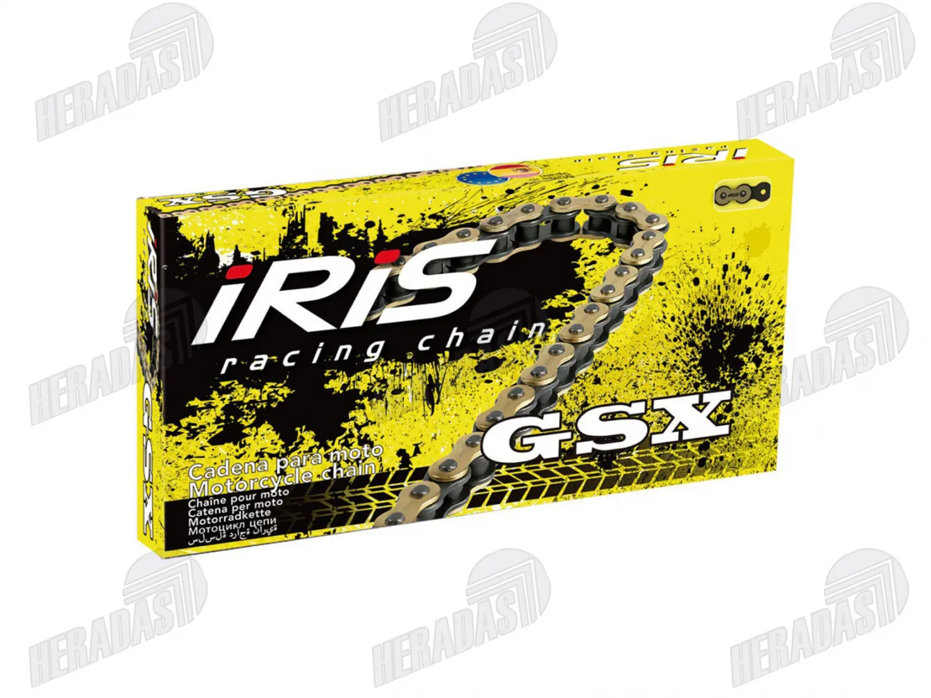 Grandinė motociklo tipas 520-112 narelių IRIS auksinė
