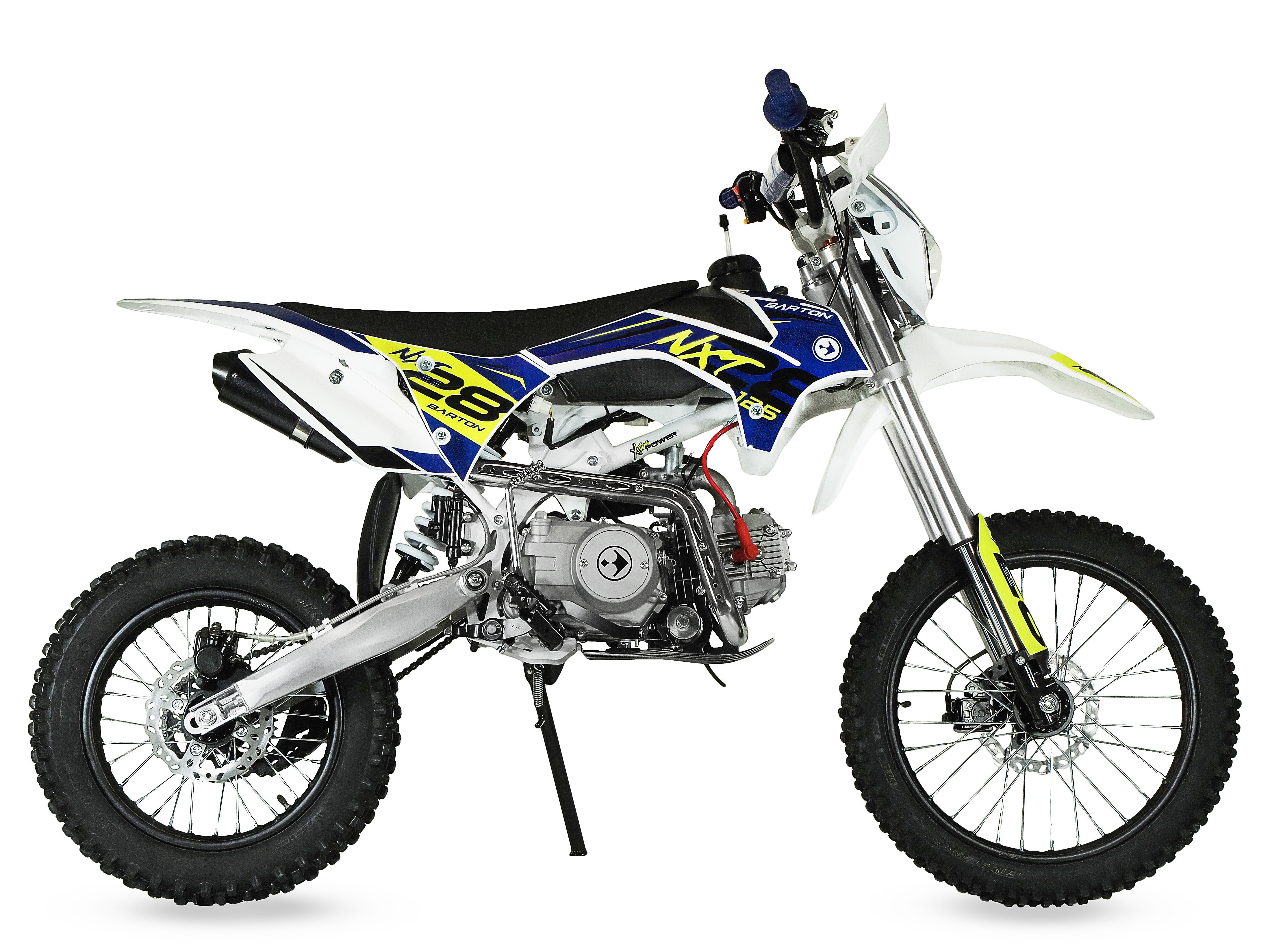 Vieno cilindro, keturių taktų, oru aušinamas, su keturių greičių pavarų dėže krosinis motociklas. Sustiprinta svyravimo svirties konstrukcija ir kempinės oro filtras skatina dinamišką važiavimą bekele. Apversta pakaba padeda susidoroti su nelygiais keliais. Įmontuotas motovalandų skaitiklis. Šio motociklo akumuliatorių galite rasti gerai pasiekiamoje ir lengvai išimamoje/įkraunamoje vietoje - tiesiai po sėdyne. Patogi, minkšta sėdynė (86 cm sėdynės aukštis) – leis vairuotojui patirti komfortišką kelionę ir važiavimas su Barton NXT125 bus grynas malonumas.