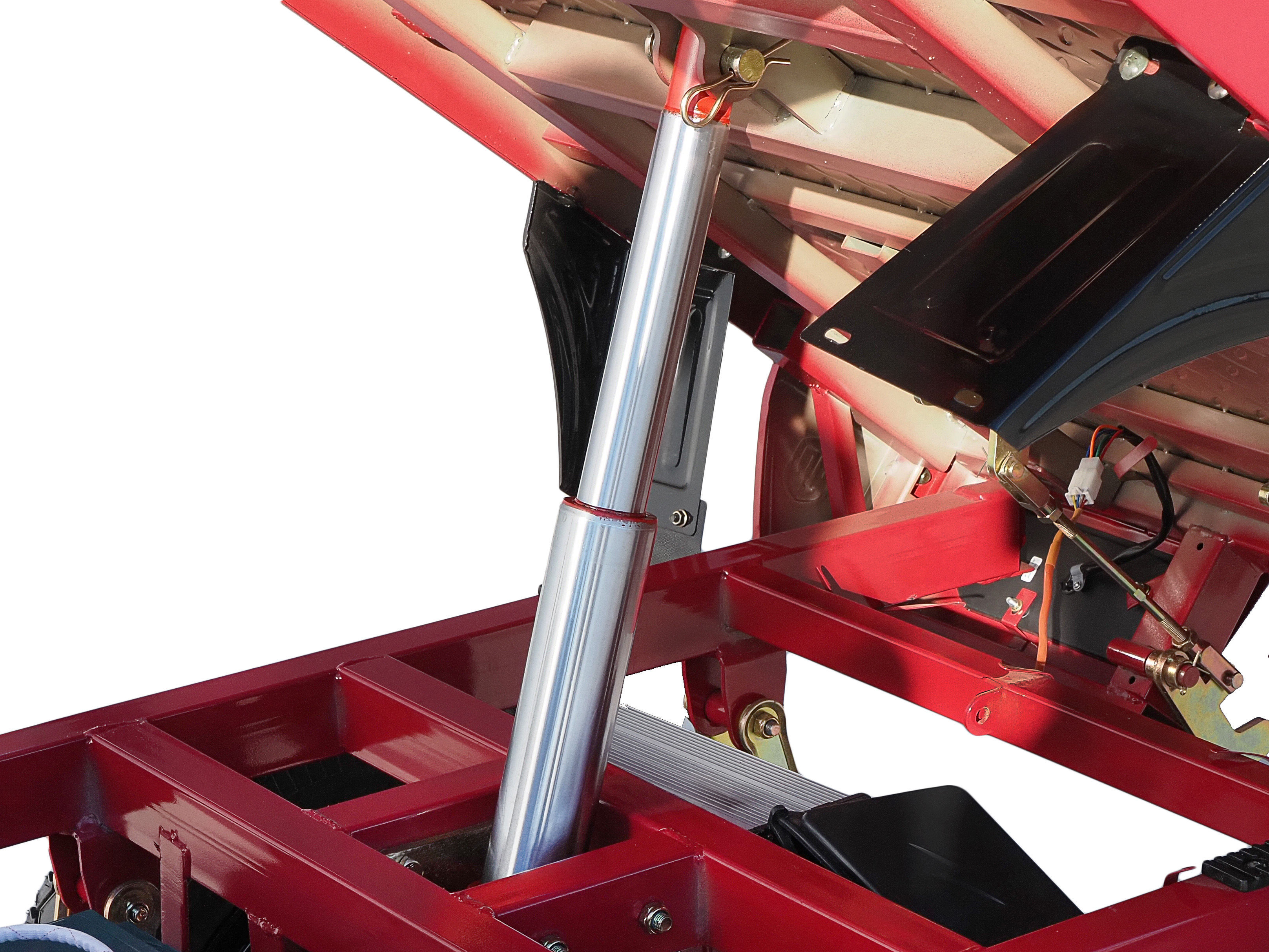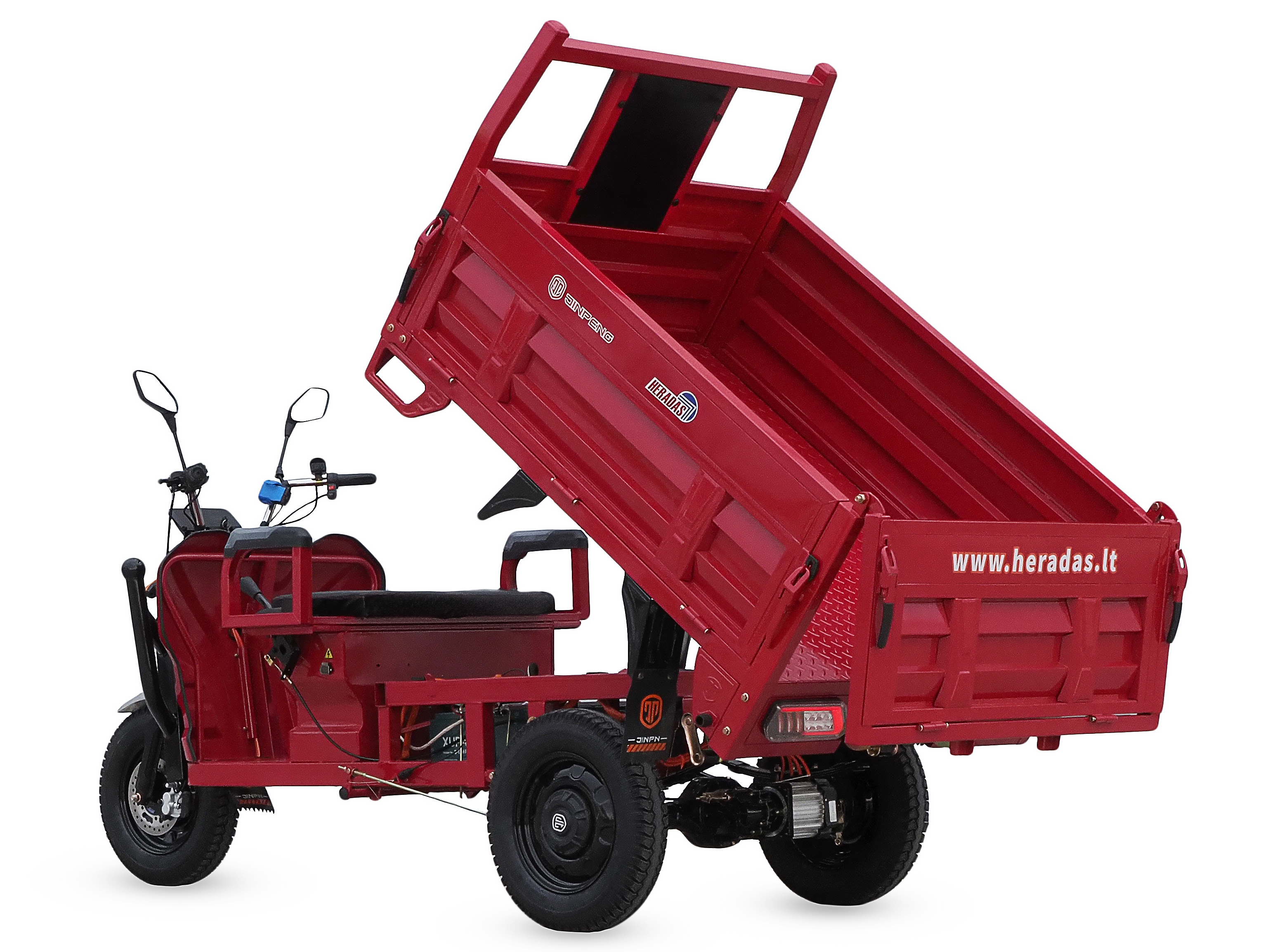 Krovininis triratis turi hidrocilindrą, kurio pagalba krovinių platformą pakelsite vienu mygtuko paspaudimu.