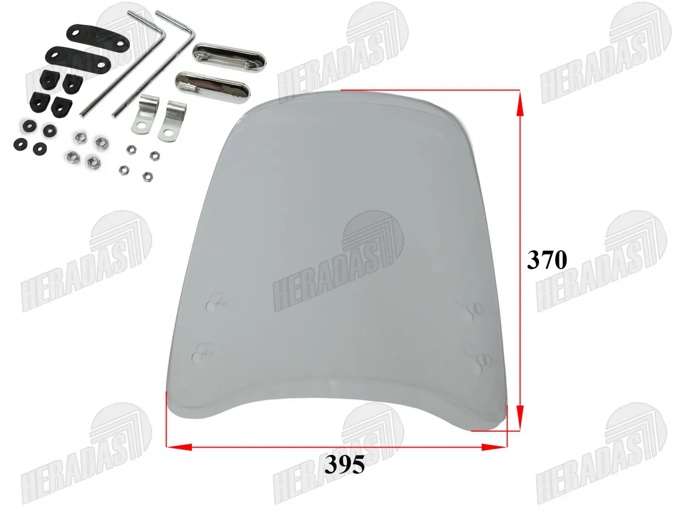 Motociklo priekinis stiklas su tvirtinimais universalus 395X370MM