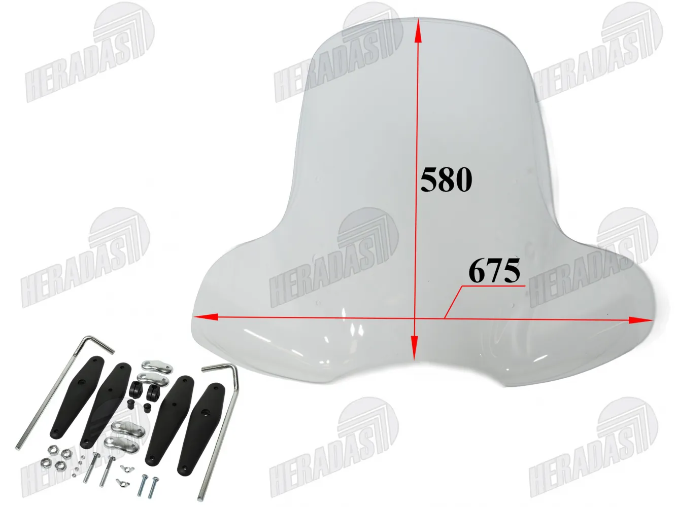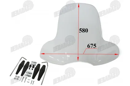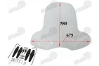 Motociklo priekinis stiklas su tvirtinimais universalus 675X580MM IKI 90KM/H