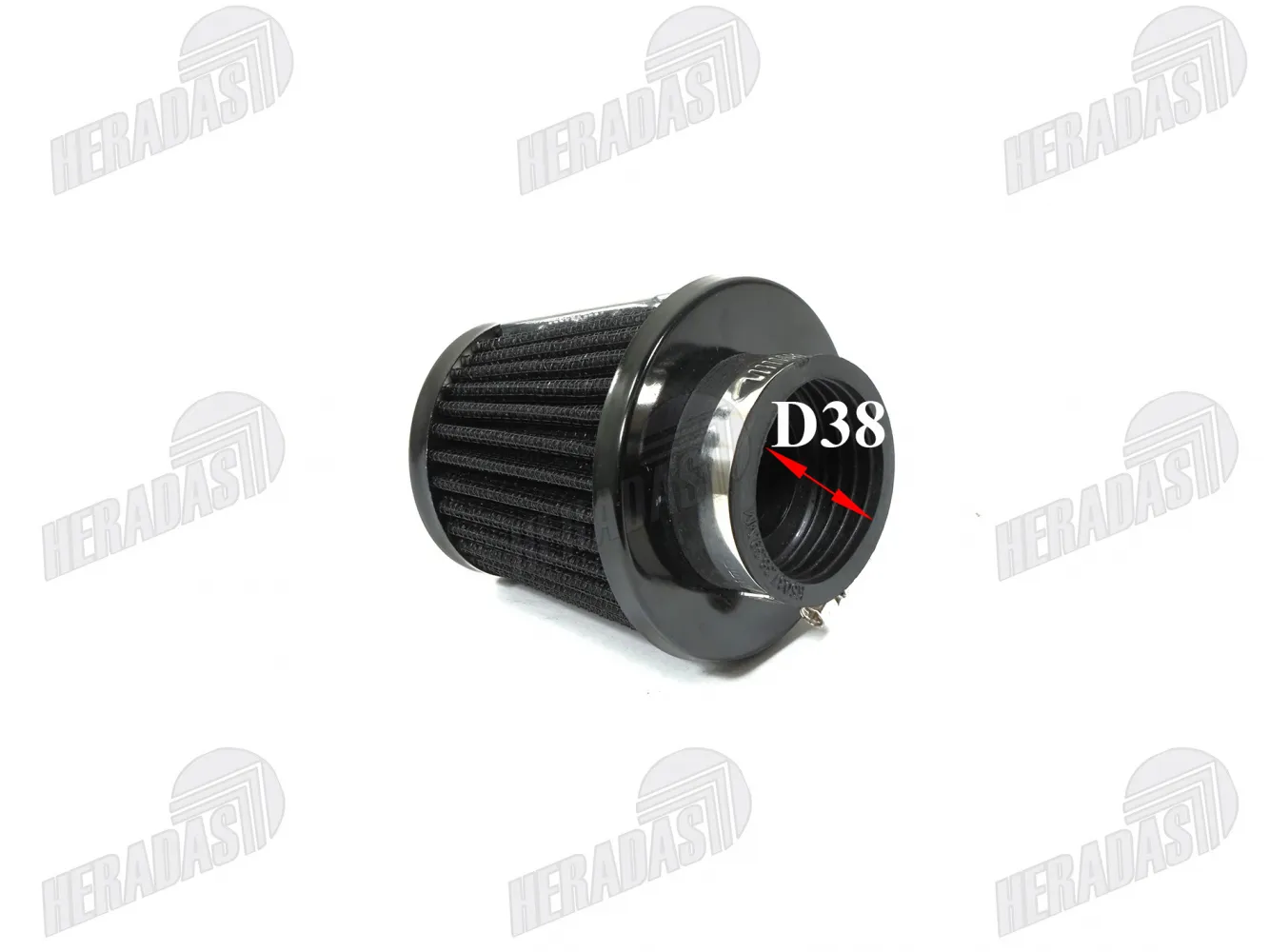 Oro filtras motociklui, keturračiui ,vielinis, 38mm tiesus juodas