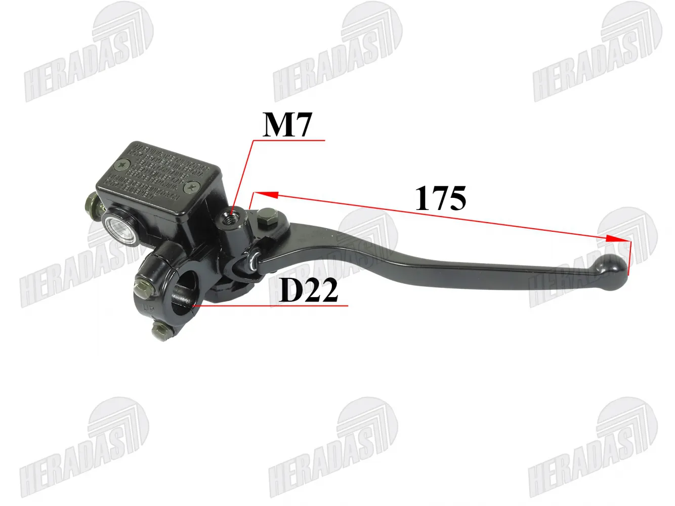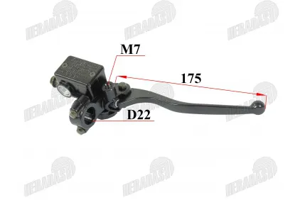 Stabdžių rankenėlė dešinės pusės su hidrocilindru keturračiui, motociklui, motoroleriui L180 su mikrojungikliu stop