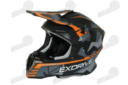 Šalmas motociklininko krosinis EXDRIVE oranžinė spalva