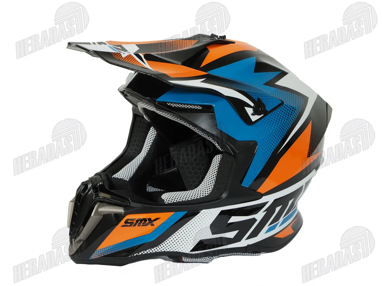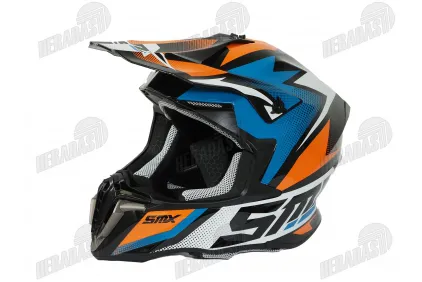 Šalmas motociklininko krosinis SMX mėlyna oranžinė spalva