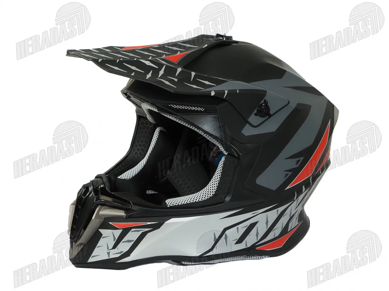 Šalmas motociklininko krosinis VF raudona pilka spalva