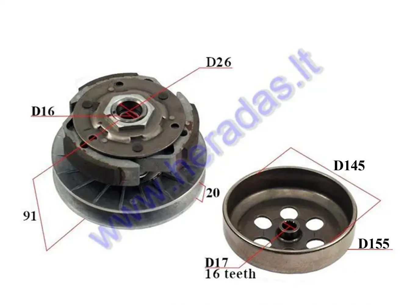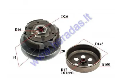 Sankaba išcentrinė keturračio motociklo LINHAI 300 D145 Buyang Feishen variatorius Linhai 260, Bashan 300