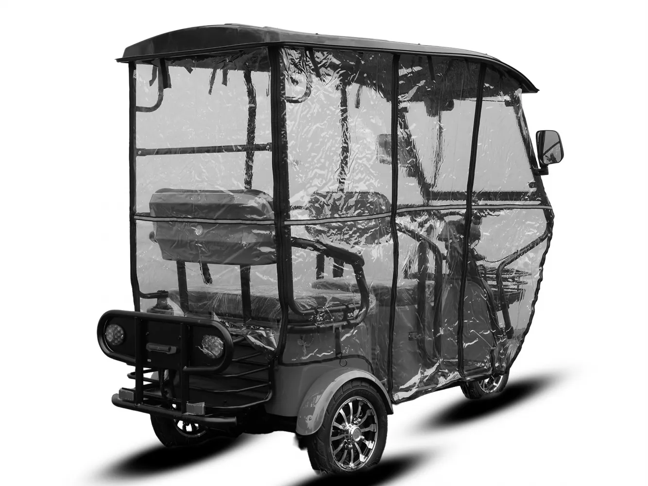 Tentas, skirtas montuoti ant elektrinio triračio stogelio šonų, kai kuriais montavimo atvejais gali uždengti priekinius apšvietimo prietaisus. Vadovaujantis Kelių eismo taisyklėmis (KET) ir viešojo saugumo reikalavimais, visos transporto priemonės apšvietimo ir signalizacijos priemonės privalo būti aiškiai matomos ir neuždengtos.