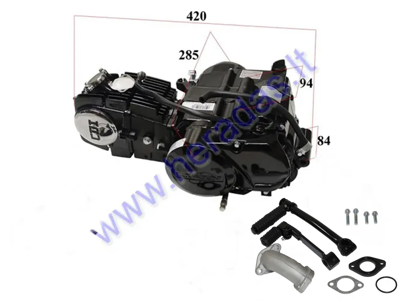 Motociklo variklis 125cc , 4 bėgiai, mechaninė greičių dėžė, aušinamas oru, elektrinis starteris 154FMB bėgiai jungiasi ratu Cilindras 52,4mm